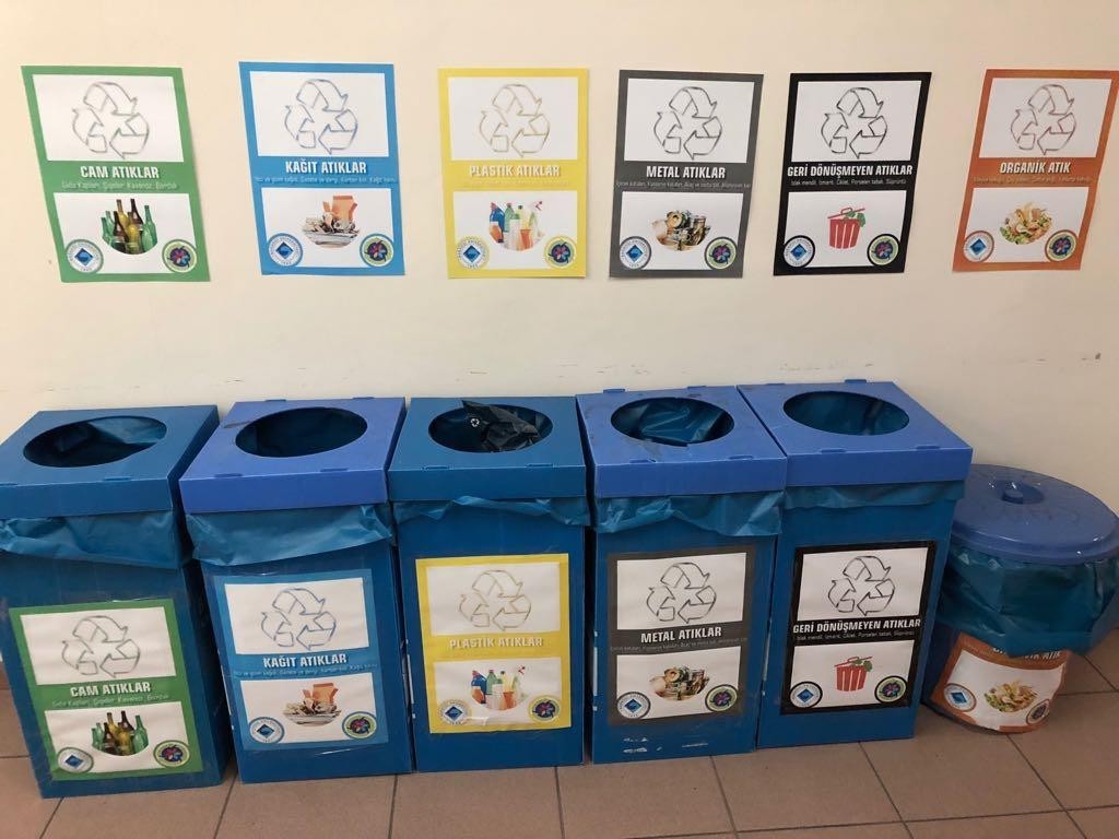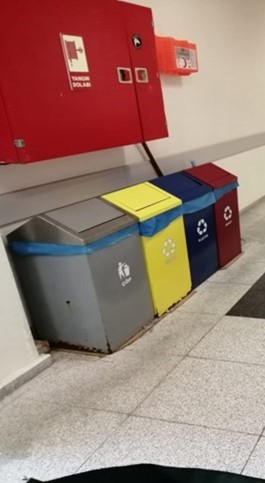 In accordance with the Zero Waste Regulation (OG: 12.07.2019-30829) and Waste Management Regulation (OG: 02.04.2015-29314), 6-sorting systems for paper, plastic, glass, metal, organic and non-recyclable waste have been developed in most buildings of our university. In addition, a 3-sorting system and waste battery collection practices have also been implemented in certain buildings. In this context, wastes on our campuses are regularly collected, stored in temporary storage areas and delivered to authorized institutions for recycling.