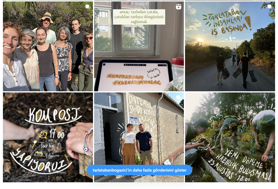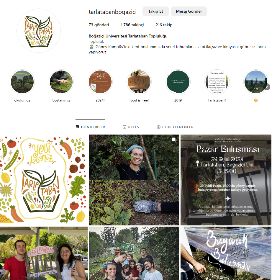 Tarlataban Community is an initiative established at Boğaziçi University that supports nature-friendly agricultural activities carried out by collective labour. The collective, which promotes ecological agriculture on and around the campus, aims to provide social and environmental benefits by advocating sustainable agriculture and fair food access.