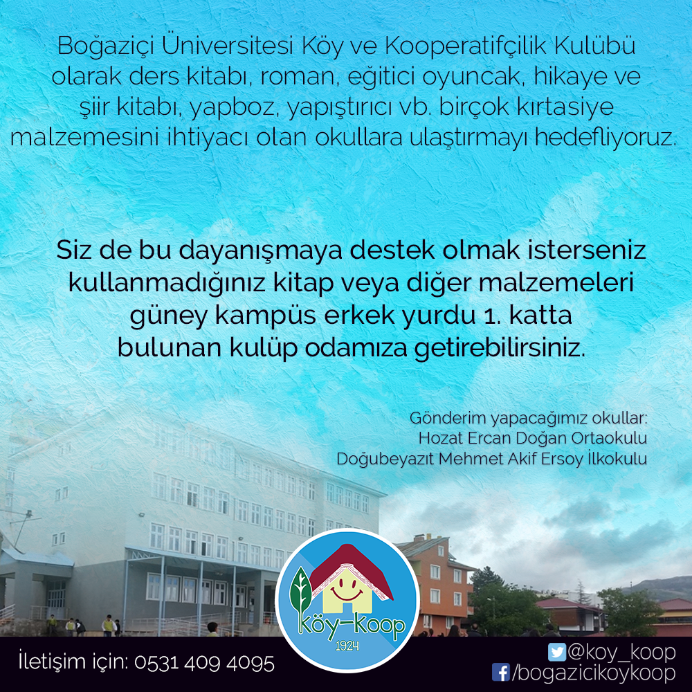 BÜKOOP Events: The Boğaziçi Members Consumption Co-operative (BÜKOOP), which operates at Boğaziçi University North Campus, provides healthy and fair food from small producers to consumers at affordable prices, while at the same time providing an environment that encourages information sharing between producers and consumers. By inspiring the establishment of new consumer co- operatives, BÜKOOP aims to provide solutions to the difficulties faced by both small producers and consumers in the fields of food, agriculture and animal husbandry. Through documentary screenings, producer interviews and field visits, it raises consumers' awareness about the food production process and supports them to establish trust-based relationships.