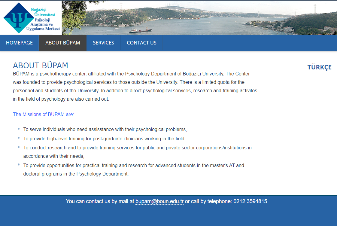 Boğaziçi University Psychology Research and Application Centre (BÜPAM) Boğaziçi University Psychology Research and Application Centre (BÜPAM) is a centre affiliated to the Department of Psychology. Public trainings and special trainings for institutions are organised at the centre: Detailed information can be found on the BÜPAM Training Activities page.