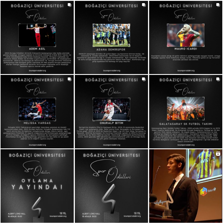 SPORTS AWARDS Boğaziçi University Sports Board aims to highlight the achievements of disabled, amateur and alternative sports that are overshadowed by professional sports in Turkey and increase their recognition. Organised with this vision, Boğaziçi University Sports Awards is a prestigious event with the wide participation of the sports community. For detailed information, please visit the SPORTS AWARDS page.