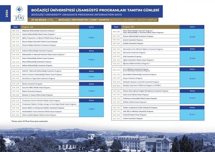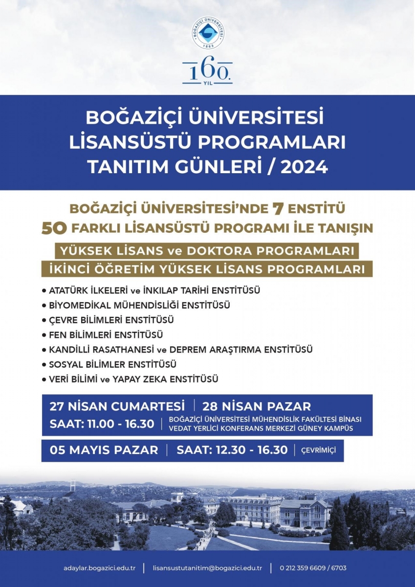 Prospective students can register to attend the information sessions and obtain detailed information, and send their questions to lisansustutanitim@bogazici.edu.tr.