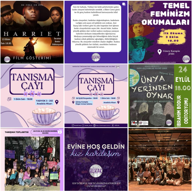 BÜKAK (Boğaziçi University Women's Research Club) is a student club that organises activities on gender studies, women's rights and combating sexual harassment.