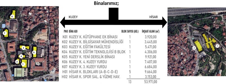 The project aims at earthquake retrofitting and energy efficiency interventions in the buildings identified within the scope of the project. A total of 12 buildings (58911m2) from our 4 campuses, built before 2007, with high earthquake risk and low energy efficiency, are included in the project.